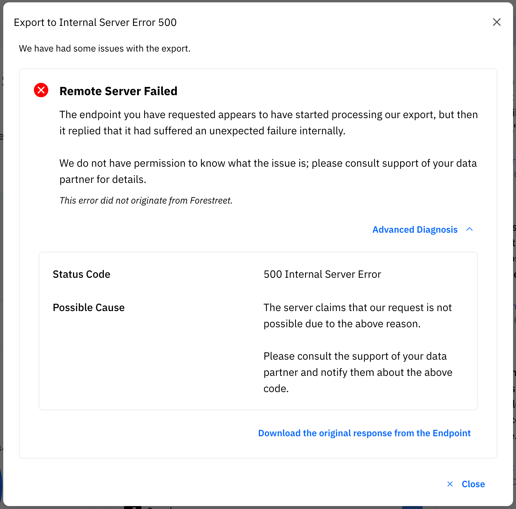 After the user had chosen the endpoint and clicked on the Export button, Forestreet will send a POST