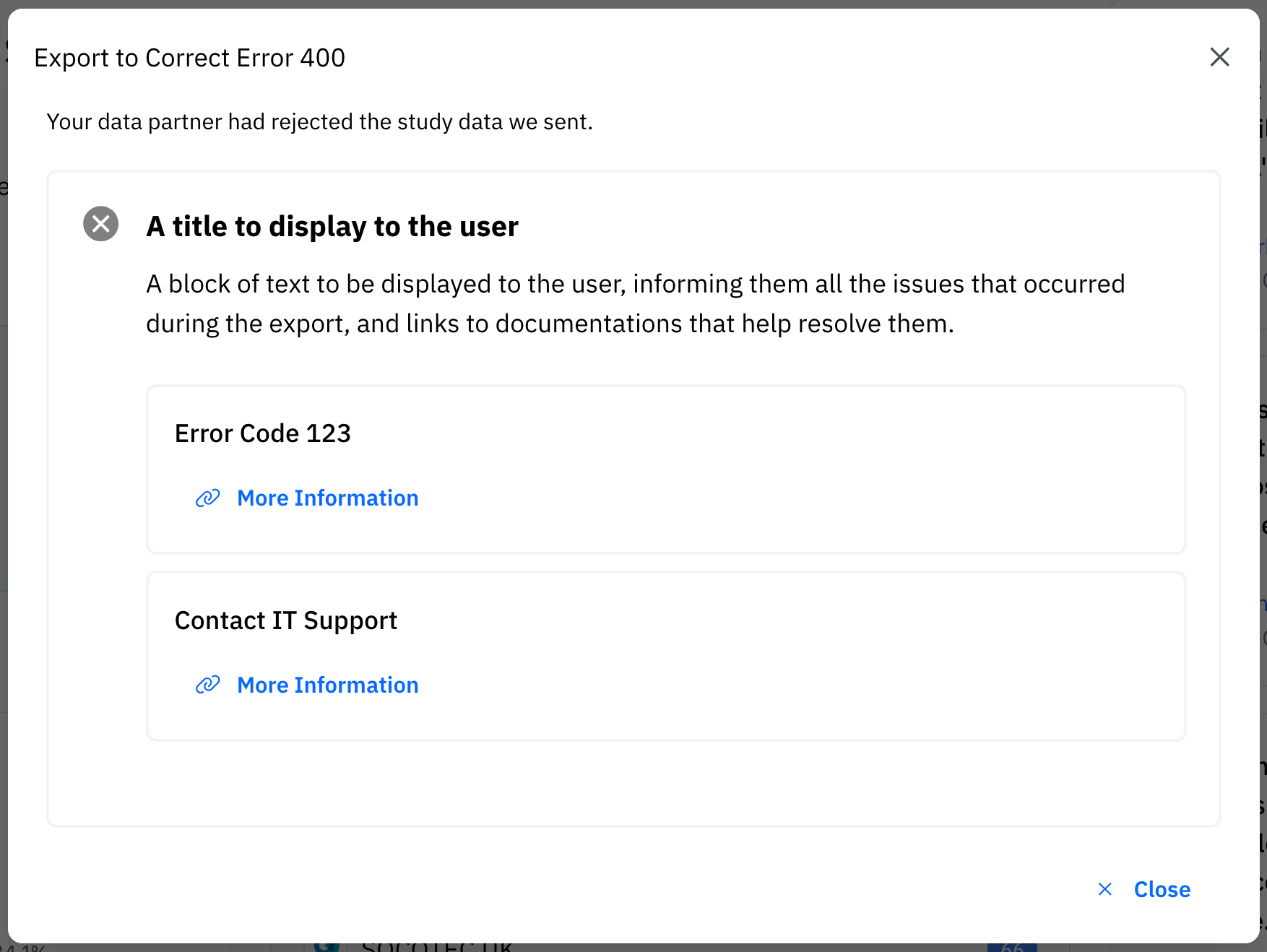and - optionally - a list of reference URLs that help the user diagnose the issue.Error