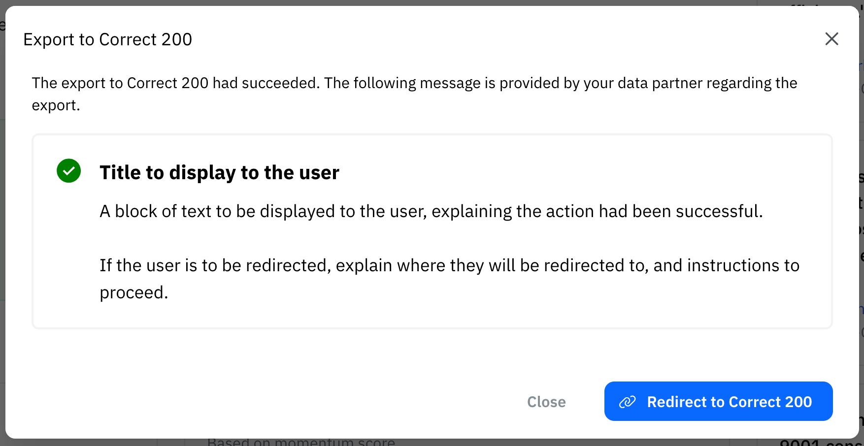 If successful, the user will be shown a title and message that you provide.If a redirect URL is provided, the user will be redirected to that URL after 5 seconds.