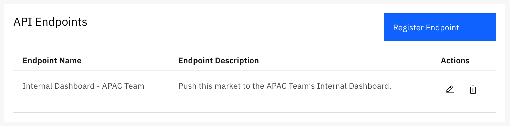 In the API Endpoints section, you can view existing endpoints and register new ones.