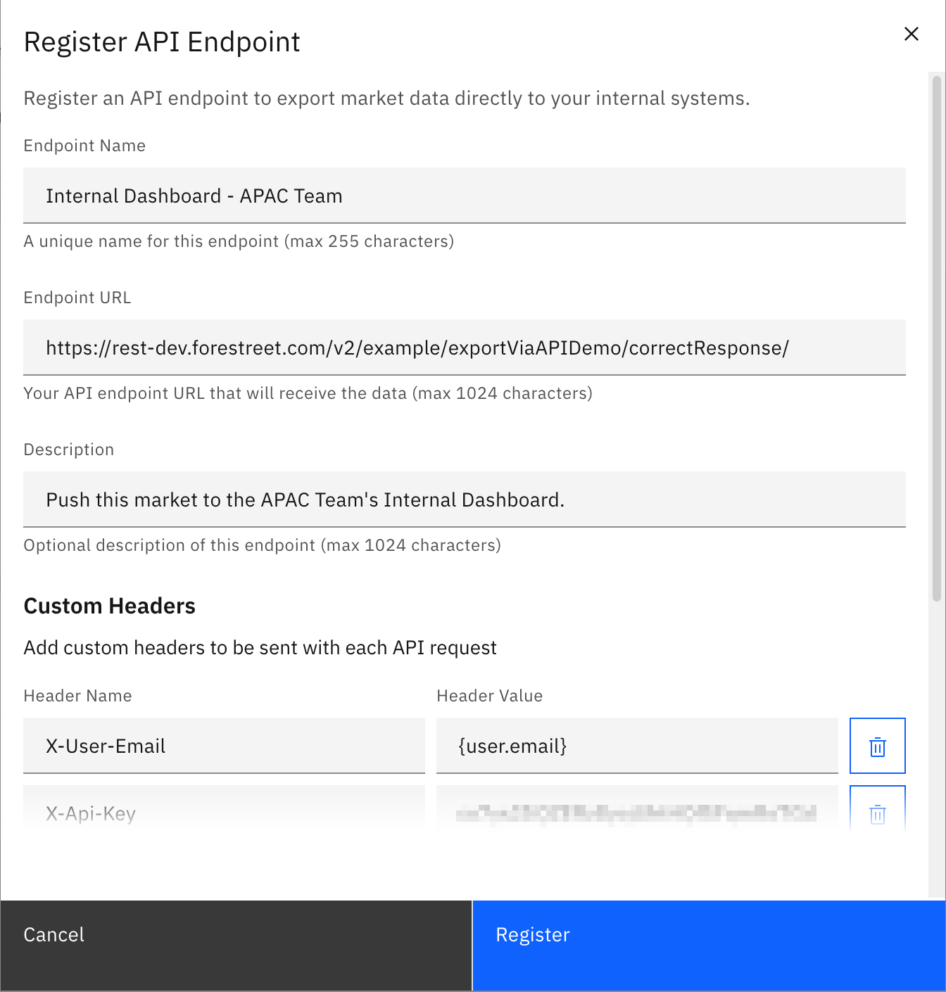 After filling in the details, click on the Register button to save the endpoint.
