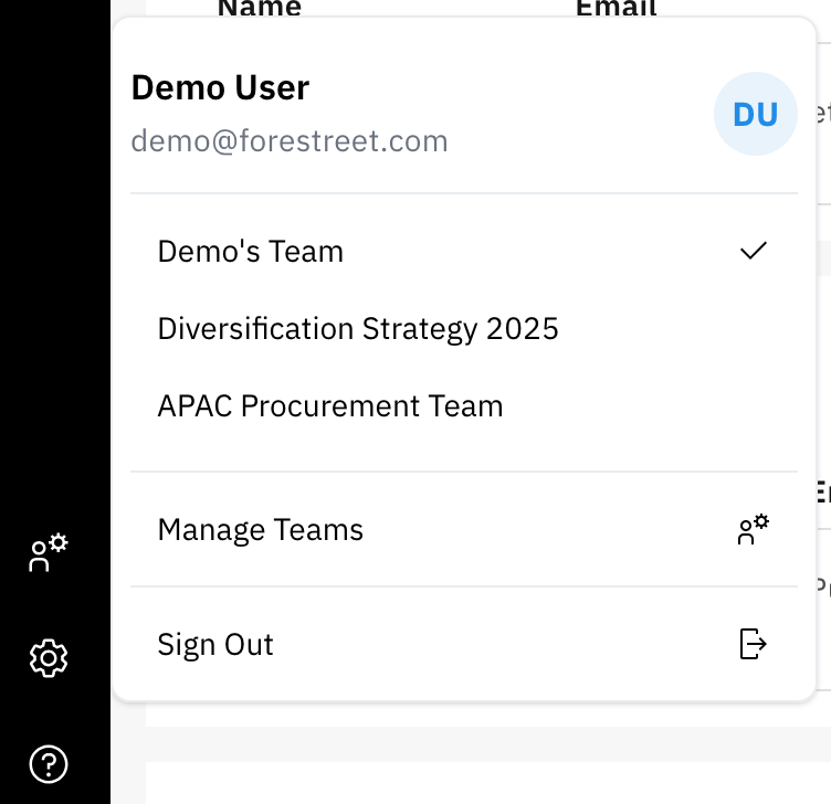 Navigate to the Manage Teams section in the Forestreet platform.